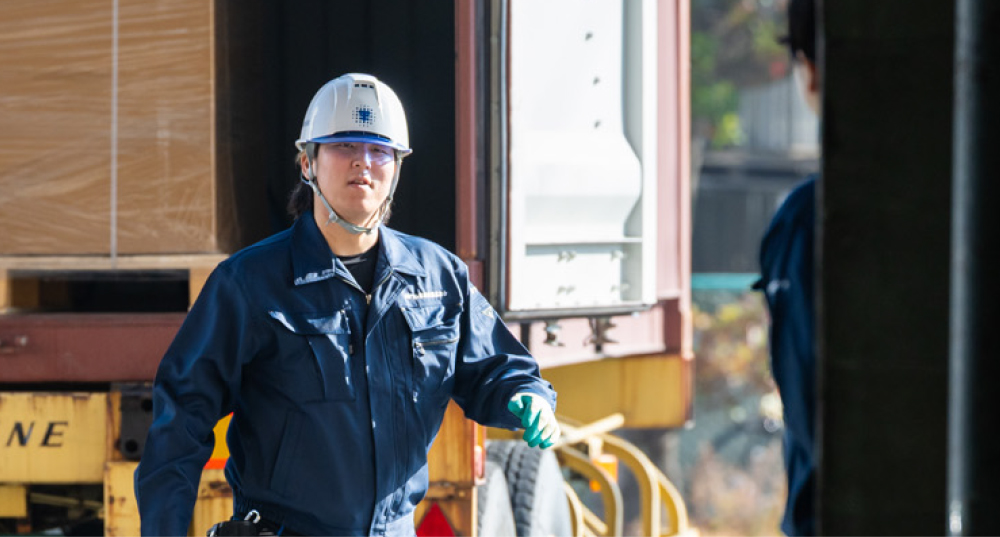 他には、海上コンテナに積載できないような超大型の貨物を大人数で一丸となってリフトやクレーン車で取り扱ったり、規模の大きな仕事ができることが魅力です。