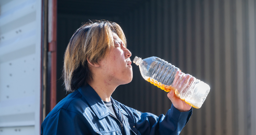 夏の暑い時期、休憩時や業務終了時に冷たい水をたくさん飲んだ時、一番達成感を感じます。