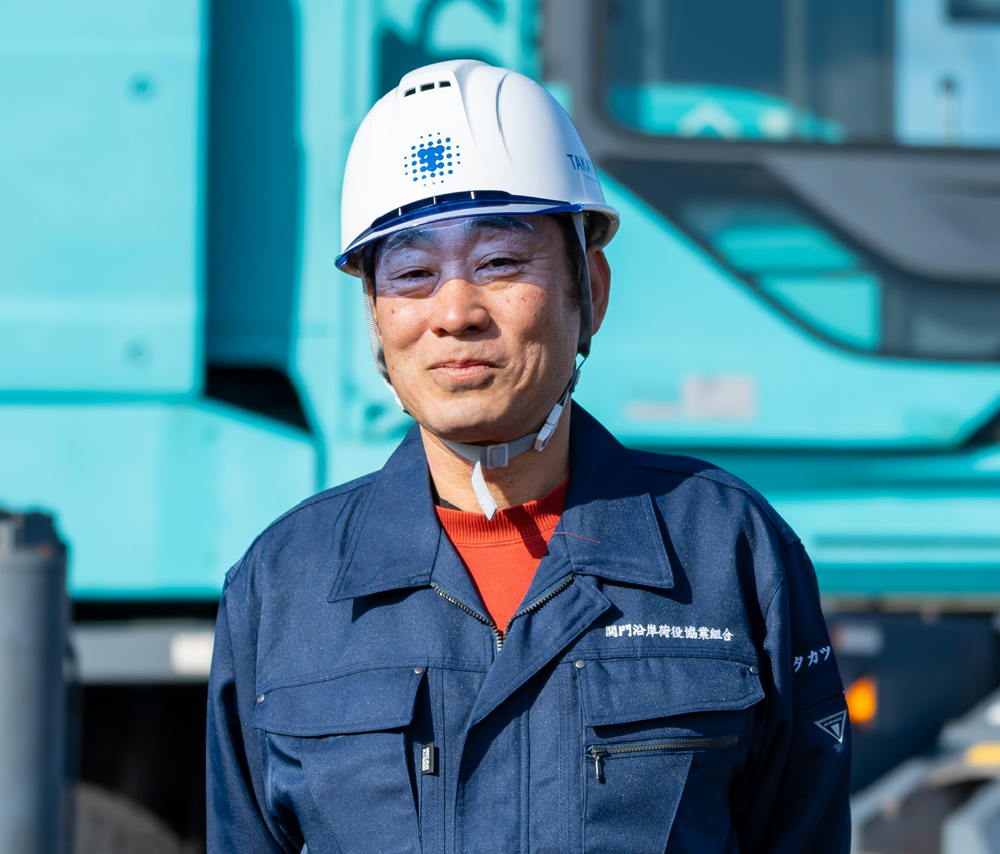 私は、下関港長府地区においてクレーンのオペレーターを勤めています。